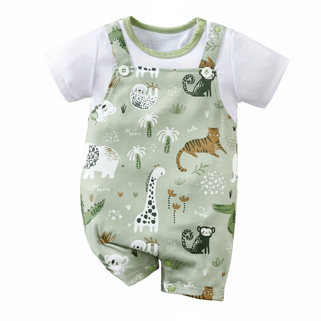 Newborn Forest Animal Print Long Sleeve Jumpsuit