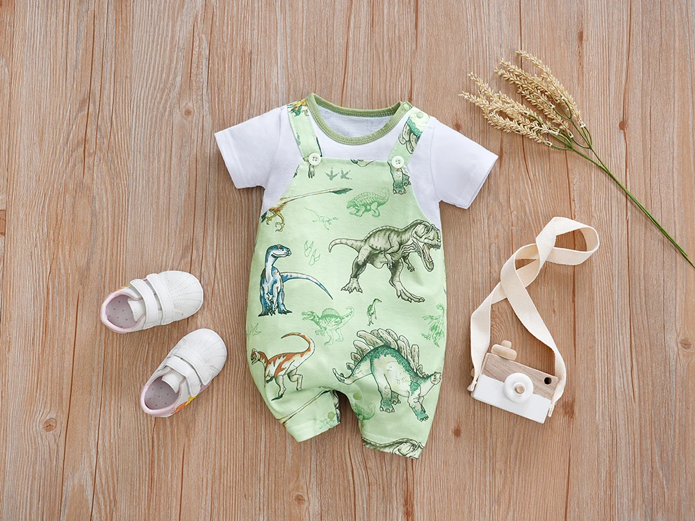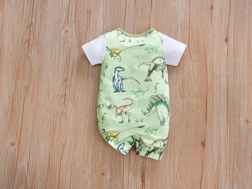 Newborn Baby Overall Romper for Boys Infant Short Sleeve Dinosaur Printed One Piece Outfit Summer Bodysuit 0-12M