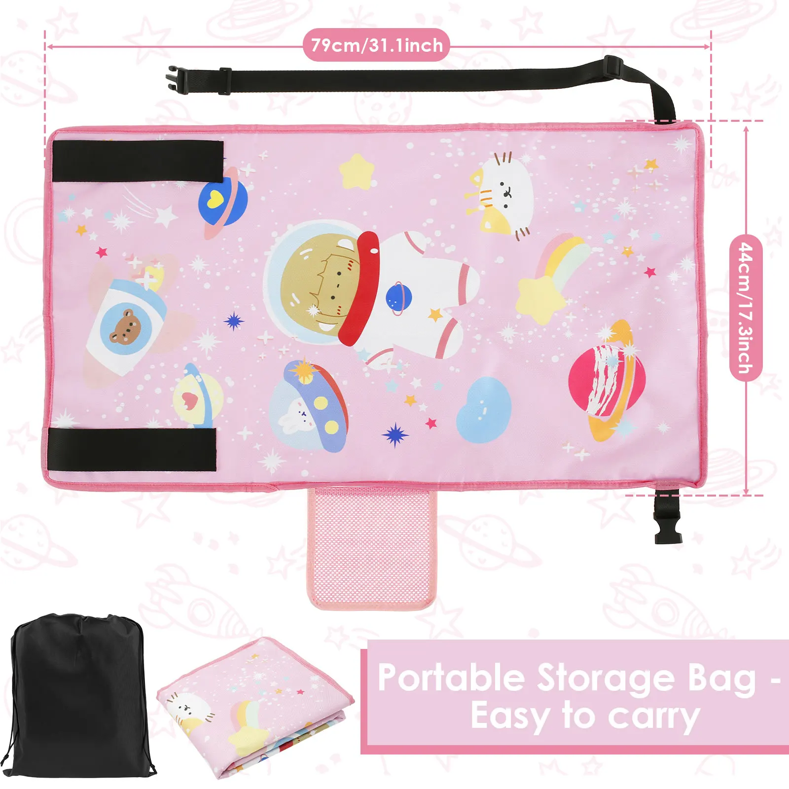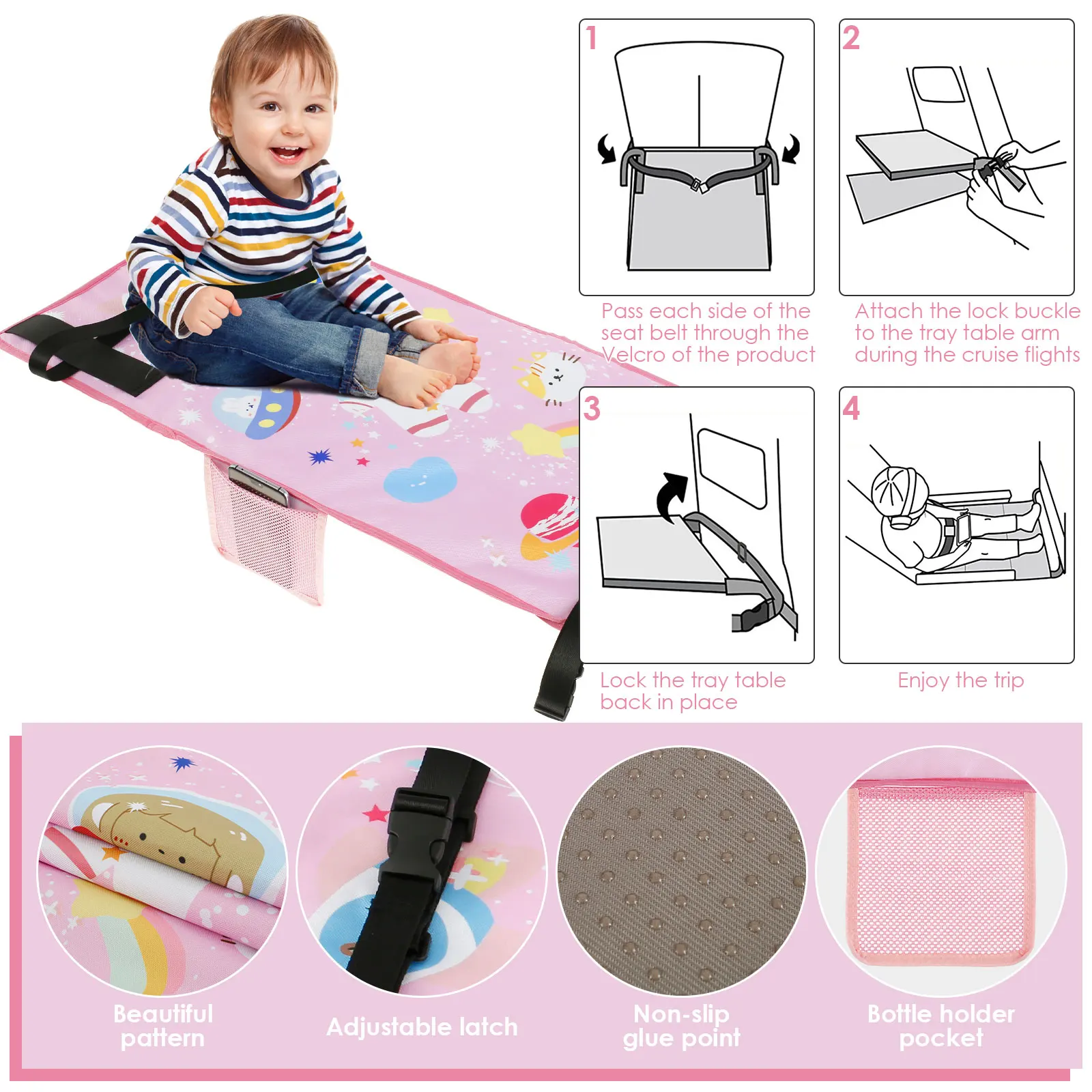[Colorful Patterns & Breathable] This kid's airplane seat extender is made with colorful patterns to make it more appealing to babies, attracting children's attention and developing their imagination. It is made of breathable oxford cloth material, with textile straps around and non-slip fabric on the back to hold the airplane footrest more securely.
