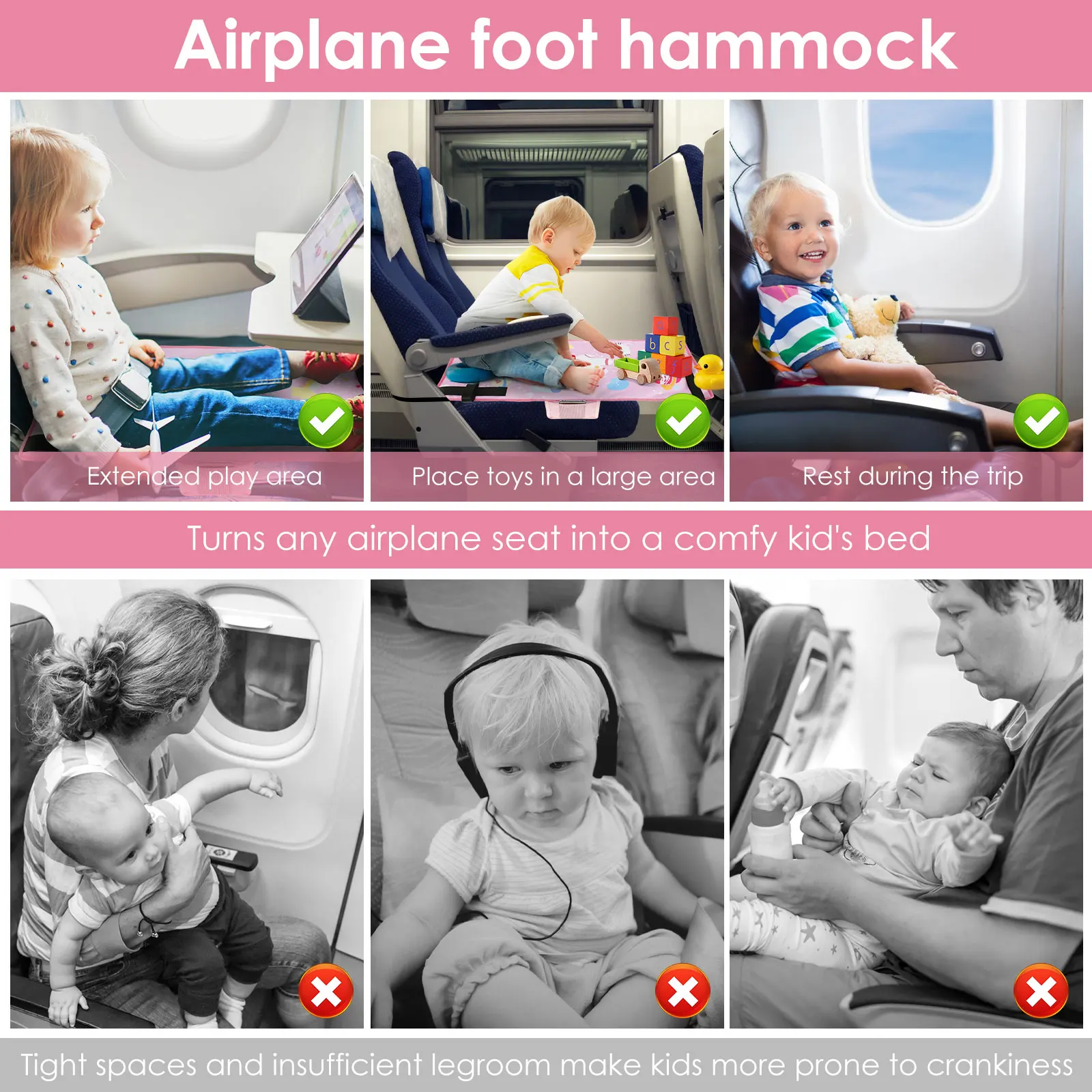 Comfortable and breathable airplane seat extender for toddlers. Creates a cozy footrest or travel bed, perfect for long flights. Easy to set up and carry with included storage bag.